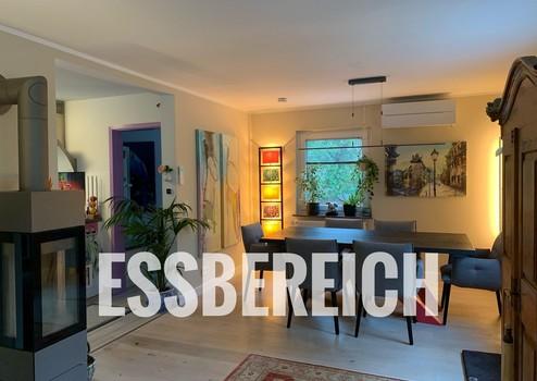 Es wurden neue Fenster verbaut sowie eine wertige Küche mit Marken-Elektrogeräten von Miele, Liebherr und Berbel installiert. Im Erdgeschoss sorgen Fliesen in moderner Holzoptik in Kombination mit einem passenden, fachmännisch verlegten Dielenboden im Wohnbereich für ein harmonisches Gesamtbild. Der moderne Schwedenofen schafft zusätzlich eine besonders gemütliche Wohnatmosphäre. Das Bad im Erdgeschoss sowie die neue Haustüre unterstreichen den stilvollen Charakter des Hauses.