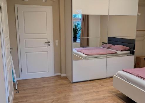 •Schlafzimmer: Doppelbett und großer Kleiderschrank