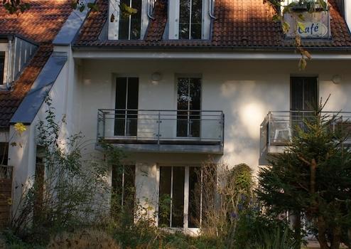 Die Wohnanlage befindet sich leicht unterhalb der Straßenanbindung abgegrenzt. Ein gemeinschaftlicher Vorgartenbereich regelt die Entsorgung durch verschlossene Müllcontainer und beleuchtete Erschließungswege zu den Einheiten. Ein großes hinteres Grundstück verschafft angenehmen Weitblick zum angrenzenden Wald. Dieses hintere Grundstück gehört nicht zur Wohnanlage und ist nicht weiter bebaubar. Zusätzliche Nutzungsabsprachen mit dem Eigentümer sind denkbar. Zum Teil sind dort einige der zur Anlage gehörende PKW-Stellplätze angelegt und grundbuchlich gesichert.