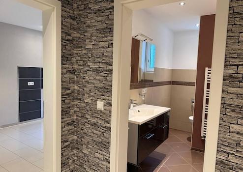 Garten, Keller, Duschbad, Barrierefrei, Laminat, Fliesen