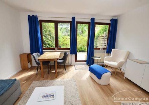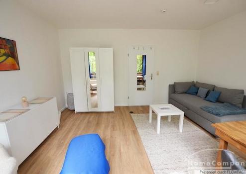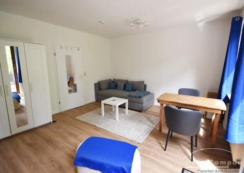 Dieses Apartment ist vor einem Jahr komplett saniert und neu möbliert worden. Es liegt im Souterrain ebenerdig zum Garten mit einem Blick ins Grüne. Durch den Wohnungseingang gelangt man in einen kleinen Flur von dem die Küche, das Badezimmer und der Wohnraum abgeht. Der Wohnraum ist optimal genutzt worden. Mit einem bequemen Sessel zum Entspannen, einem Esstisch für 2 Personen und einer Schlafcouch. Die Terrasse zum Garten steht nur dem Bewohner zur Verfügung. Die Wohnung ist perfekt für 1. Person.
