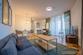 Im Wohnzimmer stehen ein gemütliches Sofa, ein Esstisch sowie ein Loungesessel zur Verfügung; ein Smart TV rundet die Ausstattung ab.