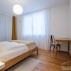 Das Schlafzimmer ist mit einem 180 cm breiten Doppelbett eingerichtet und bietet zusätzlich einen Schreibtisch für komfortables Homeoffice-Arbeiten.