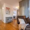Modern möbliertes Apartment mit grozügigem Wohn/Schlafbereich, möbliert mit Doppelbett, Kleiderschrank und Essbereich. Bad mit Fenster und Badewanne. Separate, voll ausgestatte Küche.