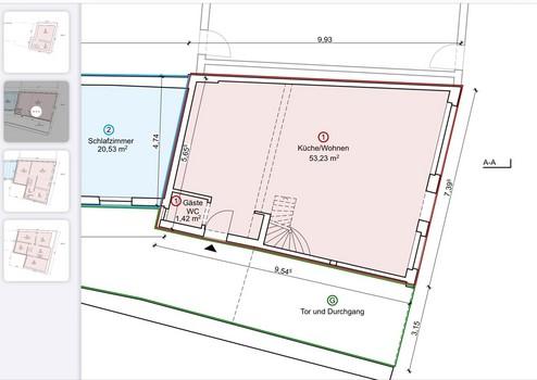 Dazu kommt ein alter Gewölbekeller und ein über eine Ausziehleiter zugänglicher, nicht ausgebauter Dachboden.
