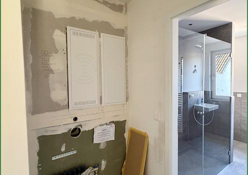 - Hausanschlüsse mit den Hauptzählern für Strom (Heizung) und Wasser sowie die erforderlichen Stromzähler mit den Hauptsicherungen, sind in den jeweiligen Hausanschlussräumen / Technikräumen im Erdgeschoss eingerichtet
