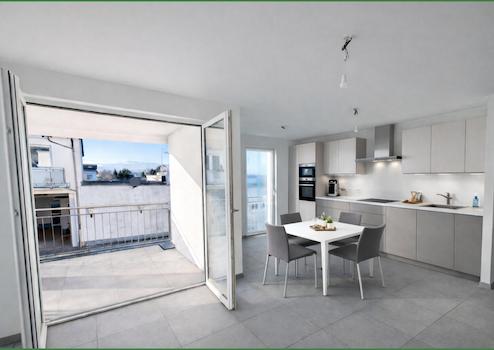 - die Schwellen der bodentiefen Fensteranlagen zu Loggien bzw. Terrassen verfügen über eine Höhe von ca. 2 cm.