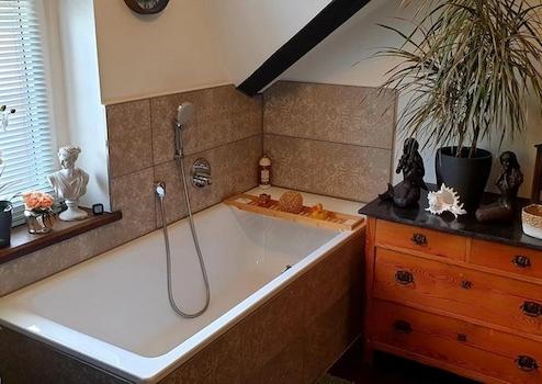 Ebenfalls auf dieser Etage befindet sich das moderne Badezimmer mit Dusche und Badewanne.