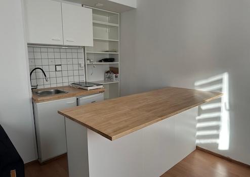 Ausstattung: Einbauküche mit Theke, ausziehbares Sofa und Waschmaschine – alles unentgeltlich mitvermietet.