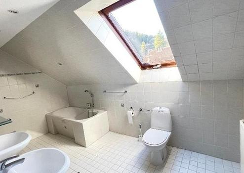 Obergeschoß - 3 Schlafzimmer, Badezimmer mit Wanne und begehbarer Dusche, das Elternschlafzimmer hat einen großen Balkon mit tollem Ausblick,