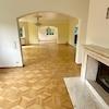 1. Etage - Eingangshalle mit Garderobe und Gästebad, Einbauküche, offenes Wohnzimmer, Esszimmer und Zimmer mit offenem Kamin, sep. Raum für Gäste oder Büro.