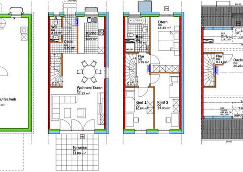- RH4: 131 m² Wohnfläche und 357 m² Grundstück: 585.000€