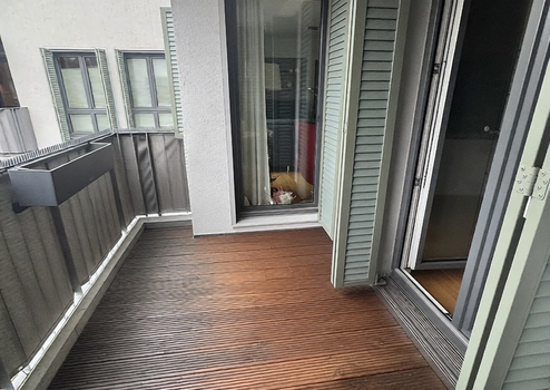 • West-Balkon (ca. 6,5 m²), zugänglich über Küche und Wohn-/Essbereich, ausgestattet mit einer elektrischen Markise.