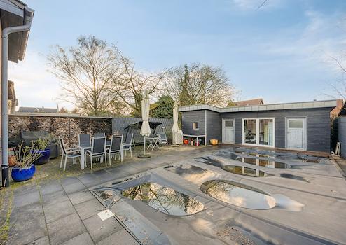 Der großzügige Innenhof eröffnet den Blick eine attraktive Poolanlage, die in der warmen Jahreszeit zum Entspannen einlädt. Beheizt wird der Pool über eine Luftwärmepumpe; die Technik ist platzsparend in einem Gartenhaus untergebracht. Eine Photovoltaikanlage aus 2023 mit 20,8 kWh Batteriespeicher (Überschusseinspeisung) rundet dieses Immobilienangebot ab.