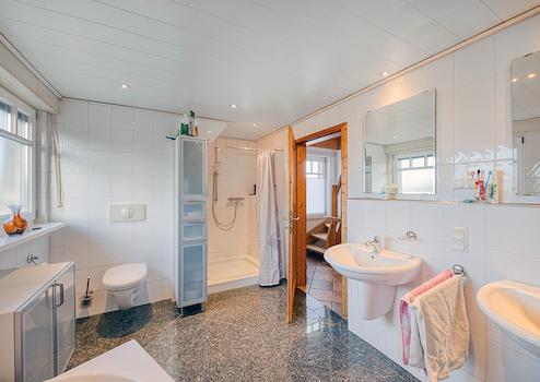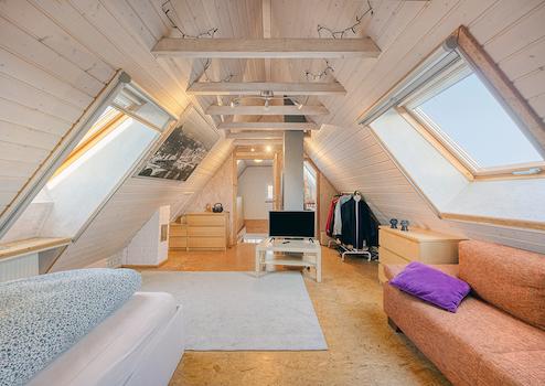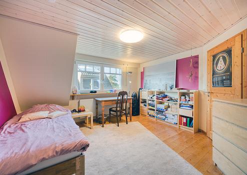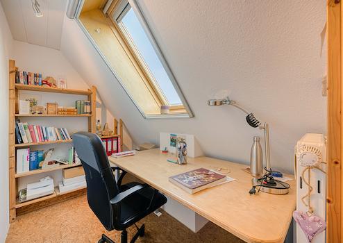 Darüber hinaus wurde in dem über eine fest installierte Holztreppe begehbaren Spitzboden ein weiterer Raum mit ca. 30 m² Nutzfläche geschaffen.