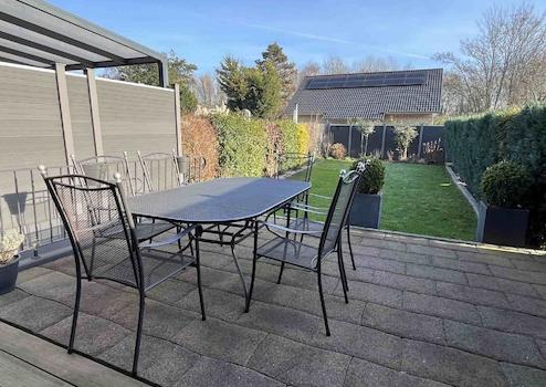 Die Ausstattung präsentiert sich in einem top-gepflegten Zustand - das Haus wurde in 2002 umfassend modernisiert, u.a. graue Bodenfliesen im EG, Laminat im OG, neue Innentüren, Wände mit Rauhfaserputz versehen, Treppenhaus modernisiert, Bad und Gäste-WC ebenfalls aus 2002. Die Beheizung erfolgt über eine Öl-Zentral-Heizung mit Warmwasseraufbereitung aus dem Baujahr 1994. Lediglich das Bad im DG und die Fenster entsprechen dem Baujahr. Die Markise über der Terrasse wurde erst in 2025 erneuert. Die schicke Einbauküche ist ebenfalls bereits im Kaufpreis enthalten.