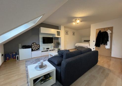 Das Obergeschoss umfasst das Badezimmer mit Wanne und Dusche, Kinderzimmer sowie großzügiges Elternschlafzimmer, das bei Bedarf in zwei Räume unterteilt werden kann. Im Dachgeschoss steht ein geräumiger Studioraum mit eigenem Duschbad aus dem Ursprungsbaujahr zur Verfügung. Der Keller bietet Waschküche, Heizungsraum und Öl-Lager sowie zwei weitere Räume zur Nutzung als Hobby- oder Lagerräume.