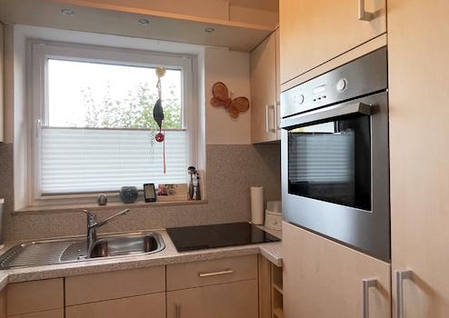 Besser kann man einen solch kleinen Küchenraum wohl kaum gestalten! Die Einbauküche ist top-gepflegt, Gebrauchsspuren sind kaum zu erkennen.