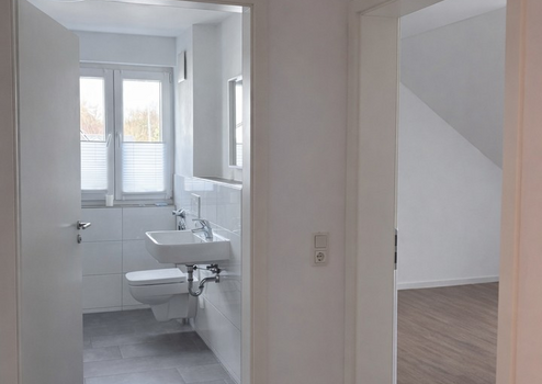 Neben dem modernen Badezimmer steht ein separates Gäste-WC zur Verfügung, was den Wohnkomfort zusätzlich erhöht. Die lichtdurchfluteten Räume schaffen eine freundliche und angenehme Wohnatmosphäre.