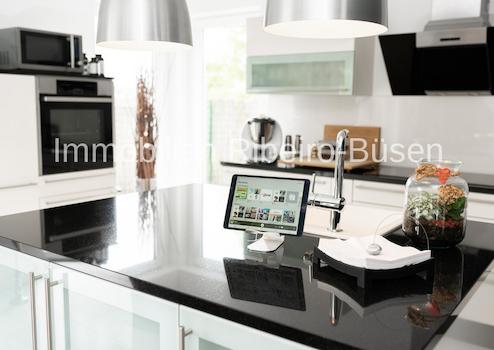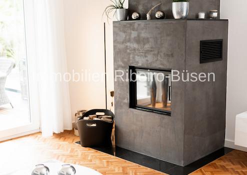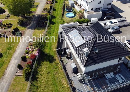 Die Rollläden der weißen Kunststofffenster sind einzeln programmierbar. Im gesamten Haus liegt eine Fußbodenheizung, die für jeden Raum individuell angesteuert werden kann. Als Hauptwärmeerzeuger dient eine Gaszentralheizung, die geschickt mit Solarthermie-Elementen auf dem Dach und mit einem wasserführenden Kaminofen im Wohnbereich kombiniert wurde. Hieraus ergibt sich in jeder Jahreszeit ein energetisch sehr effizientes und nachhaltiges Heizkonzept. Des Weiteren ist dieses Haus mit einer Photovoltaikanlage nebst Batteriespeicher und Wallbox ausgestattet. Die Details zur Haustechnik, weitere interessante technische Raffinessen und Ausstattungshighlights erläutern wir Ihnen sehr gerne im persönlichen Gespräch.
