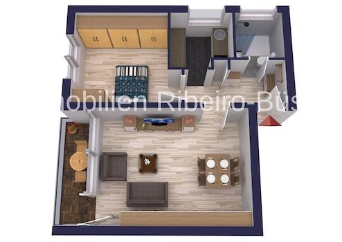 Herzlich willkommen! Diese gut ausgestattete Wohnung empfängt Sie, über den Wohnungsflur erreichbar, mit einem kombinierten Wohn- und Esszimmer, einer Küche, einem Schlafzimmer und einem Badezimmer mit großer Dusche.