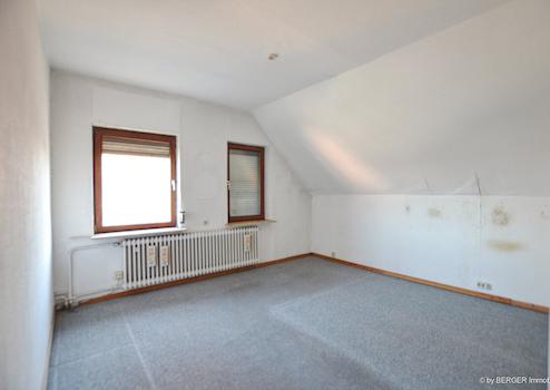 Im Dachgeschoss befindet sich eine weitere Einheit mit aktuell vier Zimmern sowie einem Duschbad. Nach Installation einer Küche kann diese Ebene als eigenständige Wohnung genutzt werden.