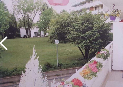 Das Gebäude liegt an einer ruhiger Nebenstraße, der Balkon geht in der noch