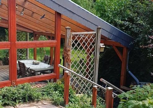 Das Grundstück verfügt über einen großen überdachten Terrassenbereich, ferner einen vom Wohnzimmer zugänglichen Terrassenbereich sowie über weitere Freisitze - Entspannung pur.