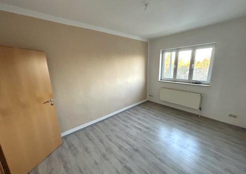 Das Schlafzimmer bietet ebenfalls genügend Raum für ein großes Bett und einen geräumigen Kleiderschrank. Auch hier sorgt der Laminatboden für eine warme und wohnliche Atmosphäre.