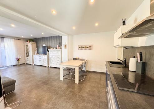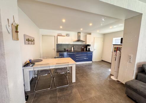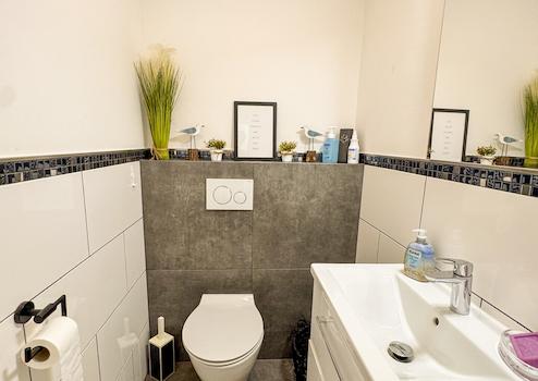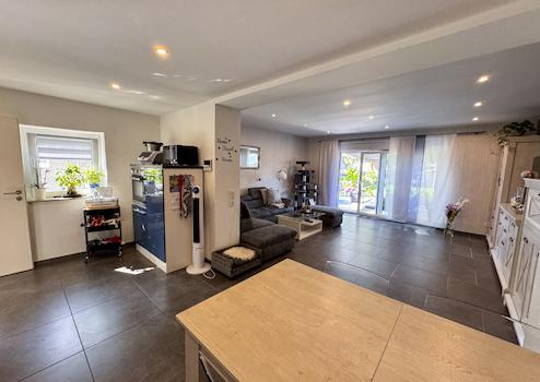 Das Hauptdach stammt aus den 1980er-Jahren, der Anbau wurde in massiver Ziegelbauweise mit neuem Dach errichtet. Im Erdgeschoss sorgt eine Fußbodenheizung in allen Bereichen für angenehme Wärme. Die Diele führt zu einem neu gestalteten, modernen Gäste-WC (gefliest, ca. 1,3 m hoch) sowie ein hochwertig modernisiertes, geräumiges Badezimmer. Dieses überzeugt mit bodentiefer Regenbrause und Glaselement, freistehender Badewanne und edlen Feinsteinzeugfliesen. Die ursprüngliche Küche des Haupthauses wurde zum Anbau hin geöffnet, sodass hier ein neuer, lichtdurchfluteter Wohnbereich entstanden ist.