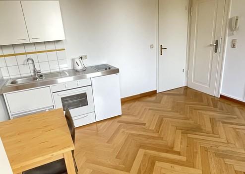 Duschbad, Einbauküche, Parkett, Fliesen