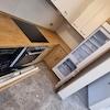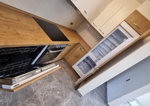 - hochwertige Einbauküche auf 2 Ebenen (Kühl- Tiefkühltruhe, Kochplatte, Backoffen, Geschirrspüler, usw.)