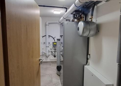 - Fußbodenheizung mit energiesparender Wärmepumpe