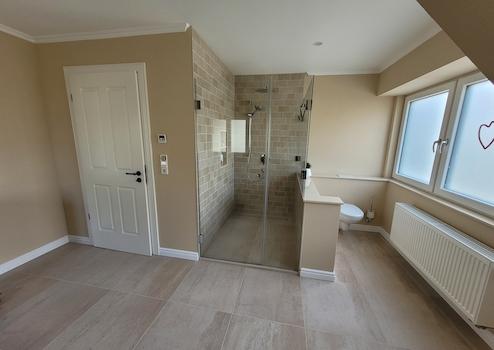 Bei der Wahl der Baumaterialien wurde höchster Wert auf Qualitätt gelegt. Es wurde z.b. hochwertiger Parkettboden verlegt, der komplette Dachstuhl wurde mit Naturdämmstoffen (Holzfaser/Hanf) gedämmt, die Fenster sind 3 fach verglast und verfügen über elektrische Rolläden etc. Das ca. 17 qm große Bad im OG wurde 2022 fertiggestellt und ist praktisch neuwertig. Es verfügt neben einer Fußbodenheizung und einer sehr großen Dusche ebenfalls wie das Bad im EG über eine Badewanne.