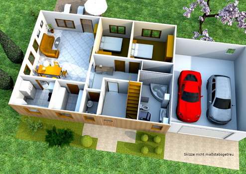 Der große Raum über der Doppelgarage ist nicht ausgebaut und könnte evtl. ebenfalls ausgebaut werden.