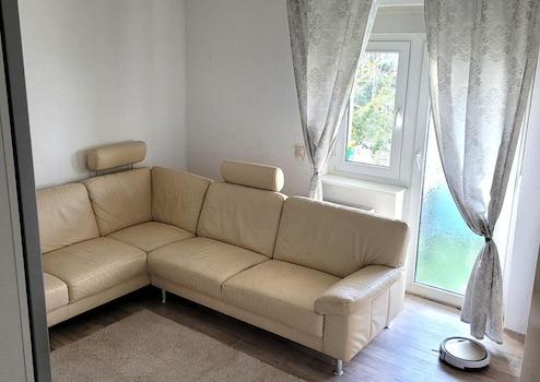 * helles Wohnzimmer mit Zugang zum Balkon - perfekt für entspannte Stunden im Freien