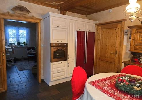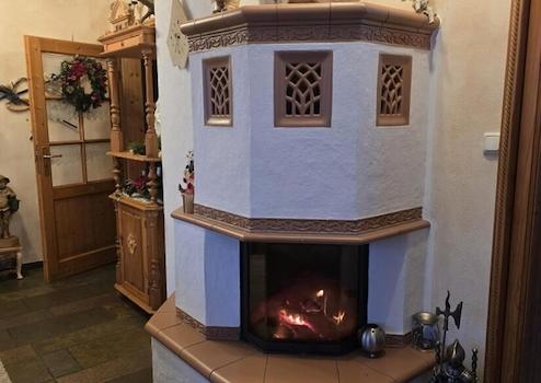 Der gehobene Wohnkomfort zeigt sich unter anderem in der hochwertigen Einbauküche mit Granitarbeitsplatte sowie in den einheitlichen Schieferfliesen im gesamten Erdgeschoss. Im Obergeschoss sorgen gepflegte Dielenböden für eine warme und einladende Wohnatmosphäre. Das Tageslichtbad ist mit Dusche und Badewanne ausgestattet. Vom Schlafzimmer aus betritt man einen sonnigen Balkon, ein weiteres Zimmer verfügt über einen stilvollen Kachelofen, der zusätzlich für Behaglichkeit sorgt.