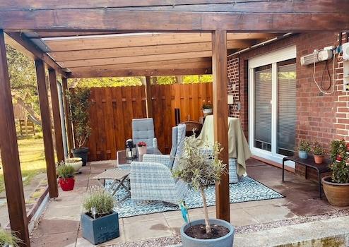 Nur wenige hundert Meter entfernt liegt der bekannte Hof Bartels, ein beliebtes Ausflugsziel in der Region. Die Umgebung ist geprägt von weiten Feldern, Waldflächen und idyllischen Wanderwegen, die zu Spaziergängen, Radtouren und Ausritten einladen. Hier genießt man echte Ruhe und Entspannung – fernab vom Stadttrubel, aber mit perfekter Infrastruktur in Reichweite.