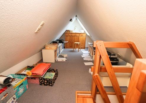 •Spitzboden über dem Elternschlafzimmer, über feste Treppe erreichbar – ideal als zusätzlicher Abstellraum oder Homeoffice