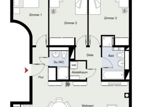 Ab dem 1.5.2026 können Sie diese schöne Wohnung in der 4. Etage erwerben. Zu dem Apartment zählen neben vier Zimmern auch zwei Badezimmer - eines davon verfügt über eine Badewanne. Der offene Wohn-und Küchenbereich (inkl. Einbauküche) bietet viel Platz für gemeinsames Leben. Drei flexibel nutzbare Schlafzimmer und 2 Balkone sorgen für zusätzlichen Komfort. Ein separater Hauswirtschaftsraum bietet Ihnen außerdem praktischen Stauraum. Die Wohnung ist barrierefrei und lässt sich bequem über einen Fahrstuhl erreichen. Ein weiteres Highlight ist eine Sauna im Kellerbereich zur Gemeinschaftsnutzung.