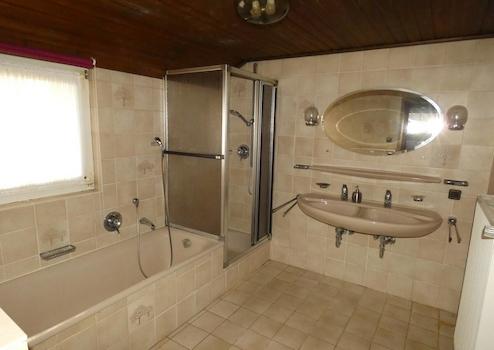 Auf ca. 220 m² Wohnfläche verteilen sich insgesamt 6 Zimmer, darunter 5 Schlafzimmer. Damit eignet sich das Haus ideal für Familien, Mehrgenerationenkonzepte oder alle, die zusätzlich Platz für Homeoffice, Hobby oder Gäste benötigen. Ein Badezimmer mit Badewanne, Dusche und Doppelwaschbecken ist im Erdgeschoss vorhanden. Die Ausstattungsqualität ist als einfach einzustufen, was den Sanierungsbedarf unterstreicht und gleichzeitig Potenzial für eine zeitgemäße Aufwertung bietet.