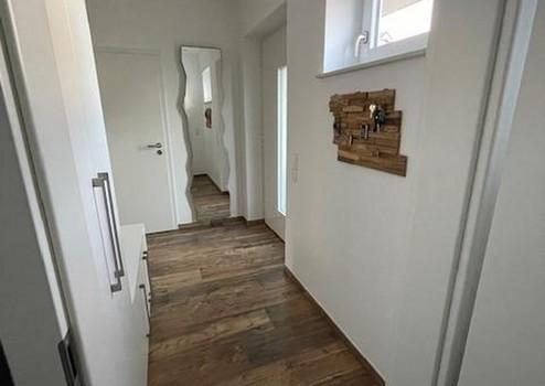 Das Erdgeschoss betreten Sie über einen überdachten Zugang und kommen in den Flur mit einer eingebauten Garderobe, die viel Stauraum für Kleidung und Schuhe bietet.