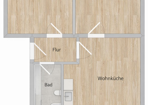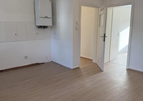 Die großzügige Wohnküche bildet den Mittelpunkt der Wohnung und bietet ausreichend Platz für einen kombinierten Wohn- und Essbereich. Zwei gut geschnittene, helle Zimmer eignen sich ideal als Schlaf-, Arbeits- oder Kinderzimmer. Ein zentraler Flur verbindet alle Räume sinnvoll miteinander.