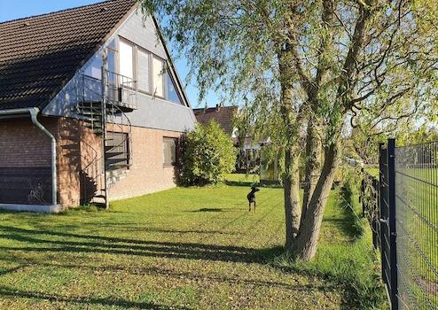 Vom gesamten hinteren Bereich und der Terrasse aus hat man einen wunderschönen Blick auf Wiesen, wie er im gesamten Ort nur selten zu finden ist. Siehe hierzu auch eine Anmerkung unter "Ausstattung".