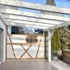 - teilüberdachte Terrasse mit Glasdach und Fachwerkwand zum Nachbarn