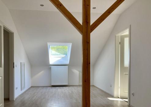 Nach oben kommen Sie zunächst in das ausgebaute Dachgeschoss mit einem großen Zimmer (Wellnessbereich). Hier stehen auch mehrere Möglichkeiten als Stauraum in den Dachschrägen zur Verfügung (Kriechspeicher). Es folgt das zweite Badezimmer mit Dusche. Das Highlight ist die an das Bad angeschlossene Sauna. Sie bietet Platz für 2 Personen und kann finnisch oder als Dampfsauna betrieben werden.