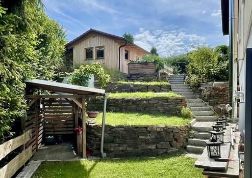 Eine Holzleg für das Verstauen Ihres Brennholzes ist ebenerdig zum Wohnzimmer vorhanden. Oberhalb der Hauptterrasse führt eine Etage zum Erdkeller mit kleinem Grillplatzerl/Feuerstelle, und abgerundet wird die Immobilie durch das 2024 fertiggestellte, maßgerfertigte Gartenhaus. Dieses können Sie entweder als Werkstatt oder als kleine Garage nutzen.