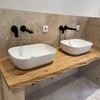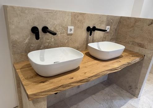 • Großes Familienbad mit Wanne, bodenebener Dusche & stilvollem Echtholz-Waschtisch
