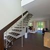 Zentraler Punkt der Villa ist die mittig platzierte Treppe, die den offenen Wohn- und Essbereich geschickt vom Kochbereich trennt. Die lichtdurchfluteten 45 m² bieten Raum zum Wohnen, Essen und Kochen und schaffen eine Atmosphäre voller Lebensfreude. Direkt neben der Küche befindet sich eine nützliche Speisekammer, während in einer separaten Nische Platz für eine Garderobe geschaffen wurde, um Jacken und Schuhe zu verstauen. Der großzügige Wohnbereich verfügt zudem über zwei Terrassentüren und bietet genügend Platz, um bei Bedarf eine zusätzliche Wand einzufügen, damit das Wohnen auf einer Ebene möglich wird - ideal für altersgerechtes Wohnen oder im Krankheitsfall. Ergänzt wird das Erdgeschoss durch ein Badezimmer sowie einen Hauswirtschaftsraum.