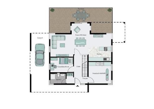 Der Angebotspreis ist inklusive Grundstück und bezieht sich auf die Standard-Ausbaustufe Fast-Fertig-Plus (Technikfertig inkl. Bäder). Somit wären Ihre Eigenleistungen: Malerarbeiten, Bodenbeläge und die Innentüren. Selbstverständlich können wir Ihr Haus auch schlüsselfertig / bezugsfertig errichten.